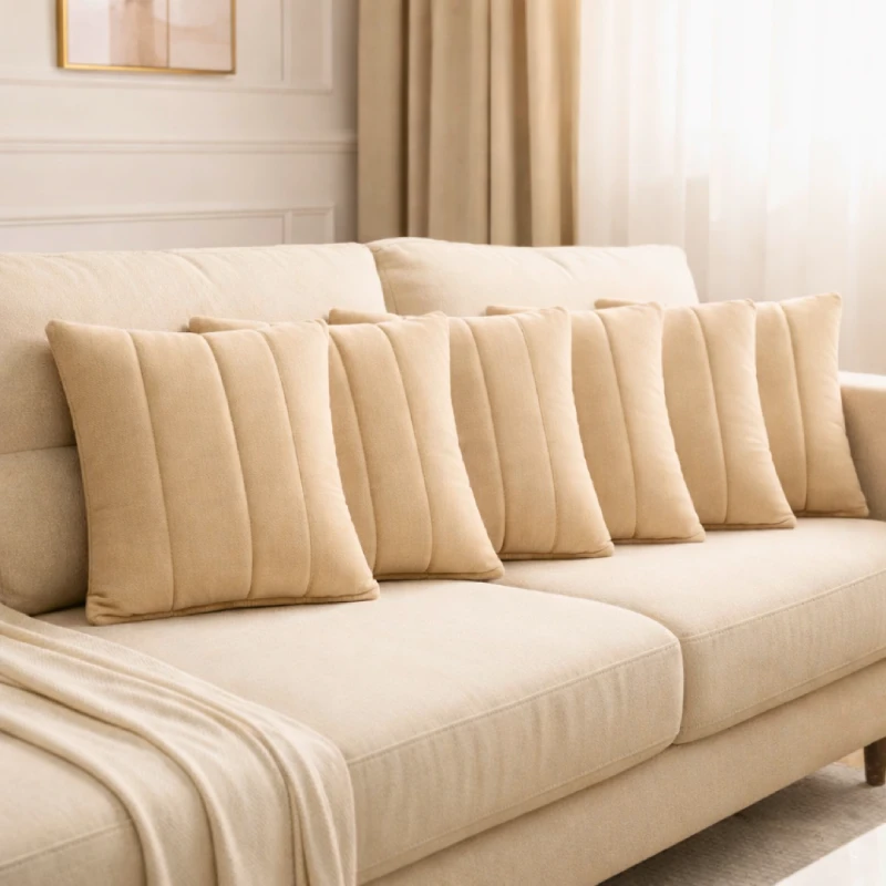 🛋 عرض 6 أكياس خدادية مطرزة – شكل شرائح